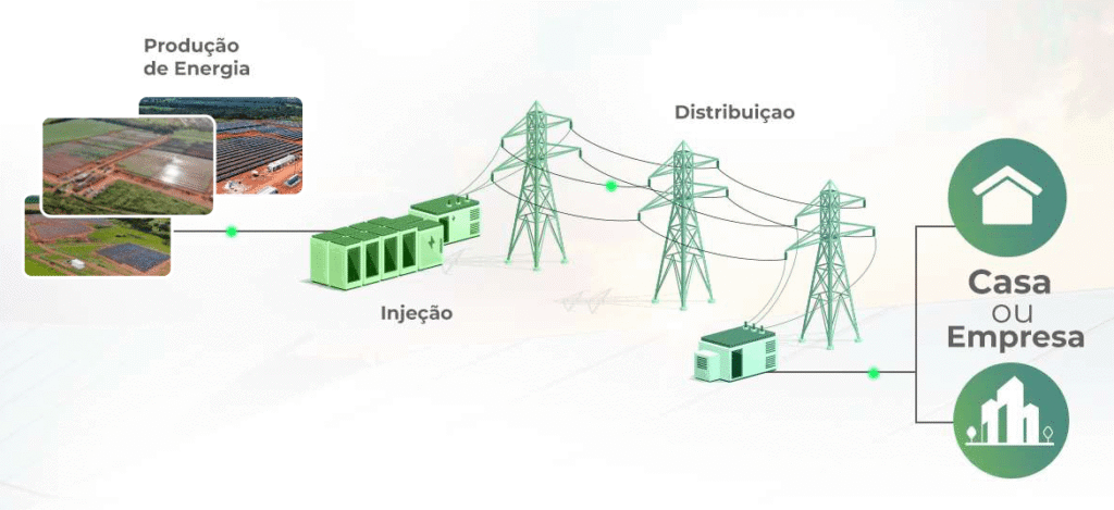 Nossas fazendas solares injetam energia limpa na rede da concessionária, gerando créditos para sua conta. Você paga menos sem mudar nada na sua estrutura.
